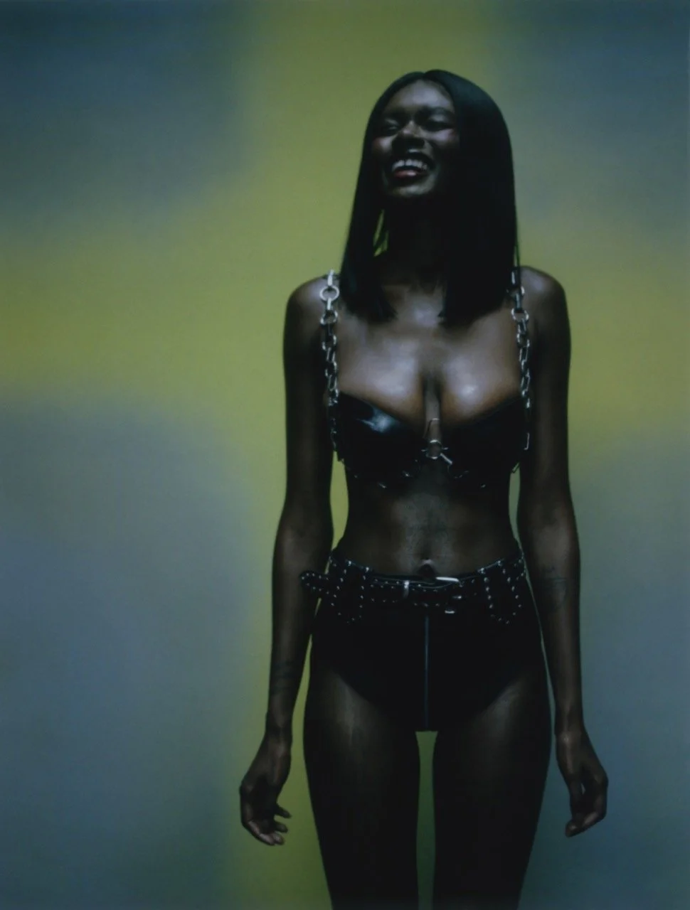 Gabriel. Moses. Selah. The Bible seems to define everything about this young photographer, who credits his remarkable success to the grace of God. The exhibition feels spiritual not only in its starkness but also in its selections. Moses' work consistently acknowledges the presence of a higher power, whether through themes of family or religious iconography — like in Paris (2024), where a crucifix frames a young model clad in a chain-link bralette, her face contorted in anguish. It's a powerful image that speaks to the continued suffering of Christ, passed down through his followers.