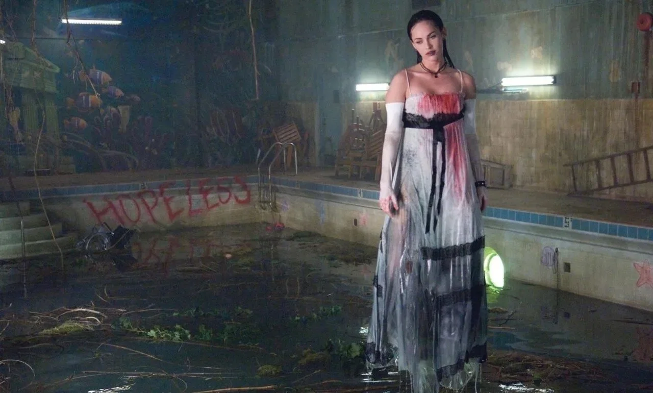 Megan Fox as Jennifer Check, floating over an abandoned swimming pool in her bloody prom dress in the 2009 cult classic Jennifer’s Body. Courtesy of 20th Century Fox. Available via Rolling Stone. © All rights belong to their respective owners. No copyright infringement intended.