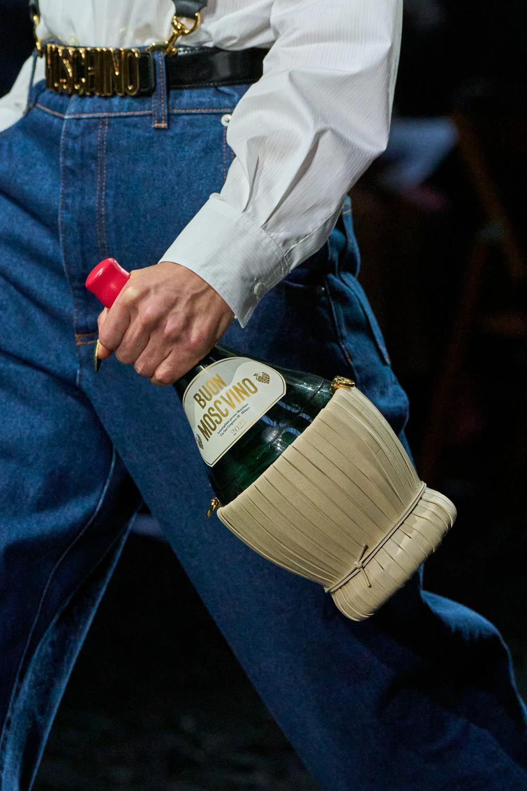 On February 28th, Moschino’s creative director, Adrian Appiolaza, wowed and delighted audiences with his spring collection. Amongst the well-tailored suits, polka dot splashes, and commendable drapery, an air of fun weaved itself throughout the looks. Specifically, the accessories reminded audiences how fashion can—and should—bring joy. The bags, ranging from suede to leather, and wine bottle to spaghetti to smiley face to cookie package, represented Appiolaza’s take on the Italian house’s campiness. These accessories added extra flair to sharply-cut coats, denim sets, and strapless mini dresses.